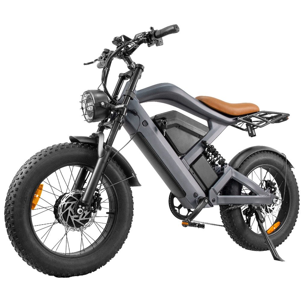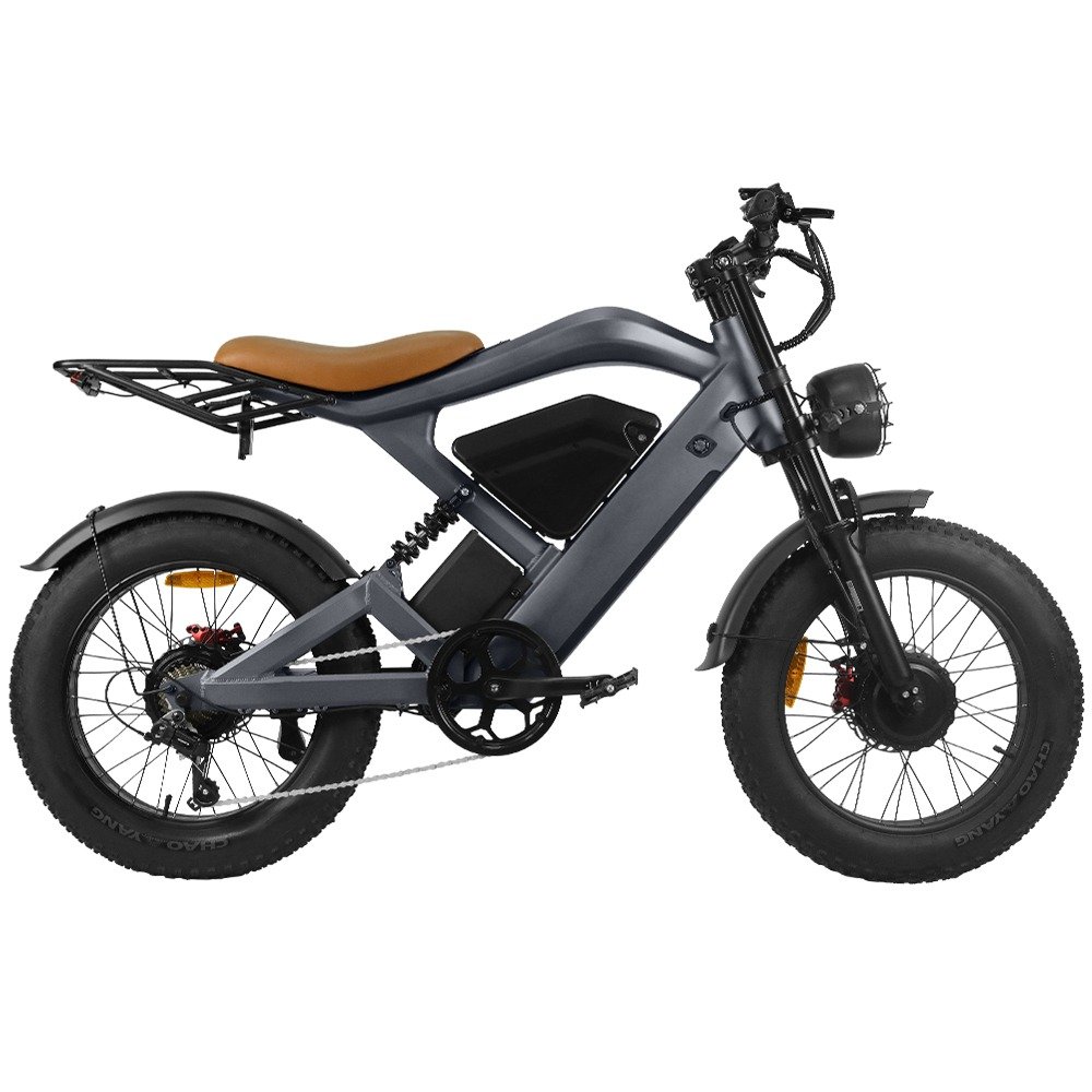 Pourquoi se contenter d’une simple balade à vélo ? L’Emoko C93 est conçue pour les trajets urbains et les escapades hors route. Son allure de moto classique, son puissant moteur de 1000 W, ses doubles suspensions avant et arrière, sa selle biplace et son cadre hétérogène lui confèrent une allure de moto élégante et performante. Avec un poids d’environ 40 kg seulement, elle offre une excellente maniabilité et un plaisir de conduite optimal.